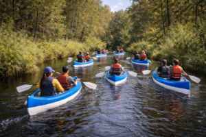 Kanuumatka jaoks on olemas kogu vajalik varustus – aerud ja päästevestid, et retk oleks turvaline ja mugav. Samuti pakume kanuude tasuta transporti matka algus- ja lõpp-punkti, et kogu korraldus oleks osalejate jaoks võimalikult lihtne ja sujuv.